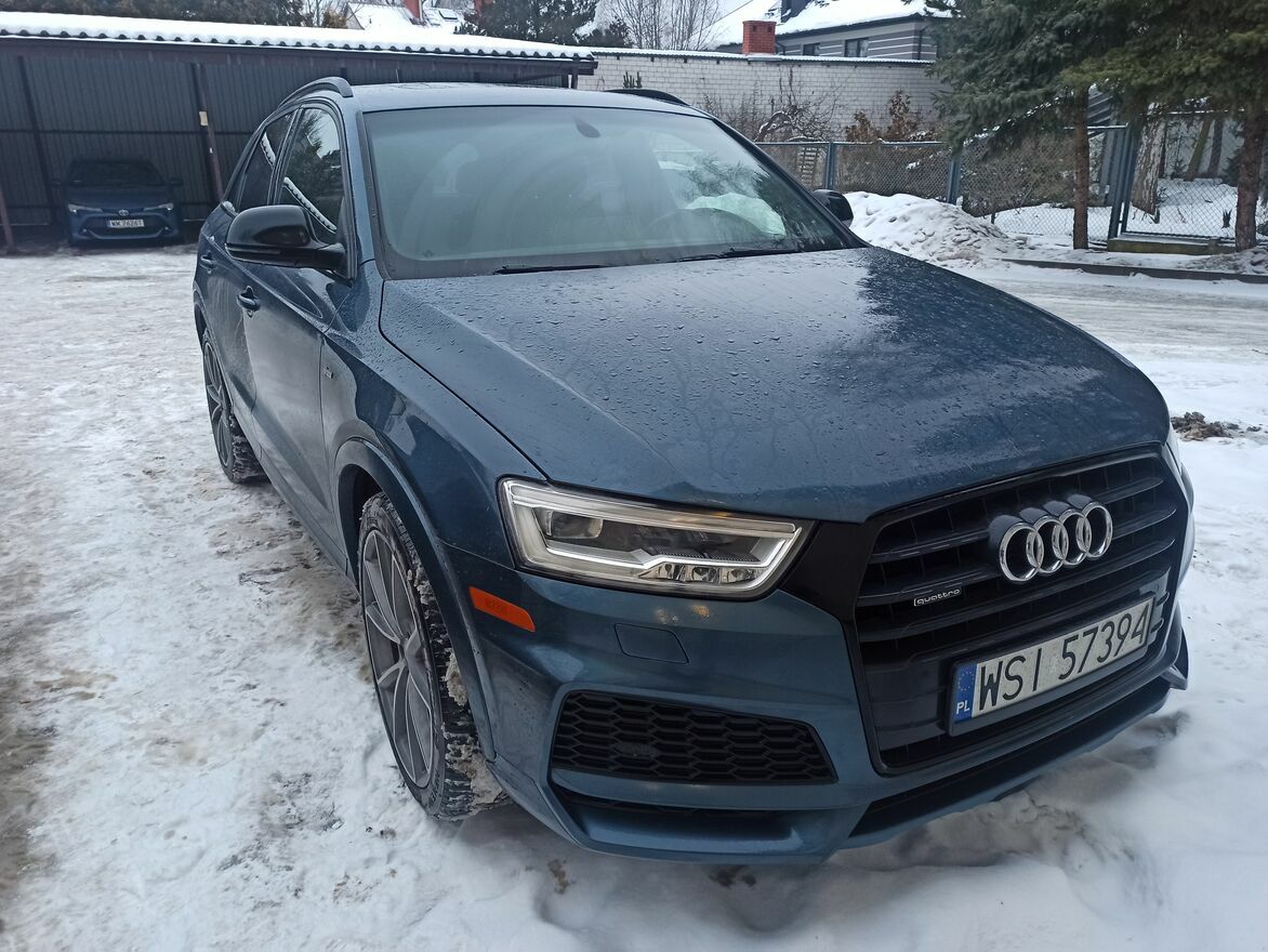 Na sprzedaż Audi Q3 Premium Plus Sport. Rok prod. 2018, 2.0 tfsi 200KM zewnętrzny oraz wewnętrzny S-Line oraz Black pakiet stylizacyjny. Automat Quattro skrzynia s-tronic 6 biegowa, światła LED przód i tyl. Pełna skóra alkantara, grafitowa podsufitka. Panorama jak również jej roleta sterowane elekteycznie. Tempomat, nagłośnienie bose, klima dwustrefowa. Oświetlenie wewnatrz ambiente. Kierownica ścięta, łopatki zmiany biegow. Przebieg minimalny 75000km. Auto po wymianie oleju w silniku, skrzyni oraz napędach. Wymienione również wszystkie filtry. Felgi 20 cali, opony nowe wielosezonowe Nokian.Sprowadzony z USA ze szkoda prawy tył. Zdjęcia w necie po wpisaniu vinu. Żadna poduszka nie wystrzelona. Szkoda uznana jako kolizja auto zaparkowane, gdy zostało uderzone nie było w ruchu. Więcej informacji pod nr telefonu. Do obejrzenia okolice Siedlec bądź Sulejówek k. Warszawy.